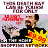 Description: A manipulated image showing Doctor Who villian The Master holding a raygun. The picture shows a 'price sticker' in the lower right corner. Text reads "This death ray can be yours for only ten easy payments of $9.99 on the Home Shopping Network."