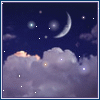 Description: A photo of the full moon rising behind clouds. The text reads "The night comes and starts to sing to me."