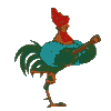 Description: A short animation of the character Alan a Dale, a rooster, walking while playing his lute.