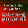 Description: Gradient black-to-red background with white text. The text reads "The truth shall set you free. But first it will piss you off. - Gloria Steinem"