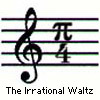Description: Musical notation showing the initial clef plus the time signature. Instead of 3/4 or 4/4, the time signature is π over 4. The text reads "The irrational waltz"