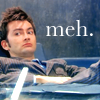 Description: A screenshot of the Tenth Doctor, from the episode Doomsday. The Doctor is slouched in a chair with a look of deep misgiving on his face. The white text reads "Meh".